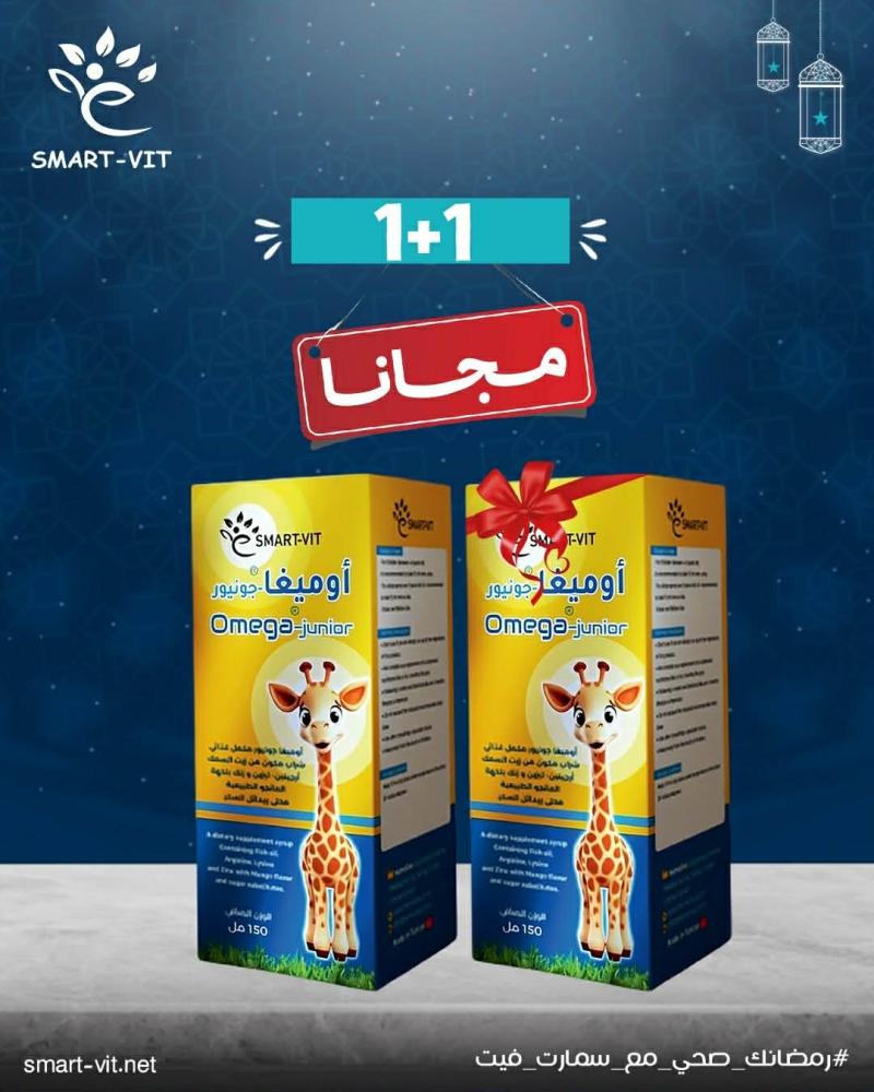 أوميجا جونيور® شراب هو مكمل غذائي متكامل بطعم المانجو المحبب للأطفال، يحتوي على تركيبة متطورة تجمع بين أوميجا-3 بتركيز 780 مجم (EPA 380 مجم – DHA 250 مجم) مع L-Arginine، L-Lysine، الزنك، وفيتامين D.